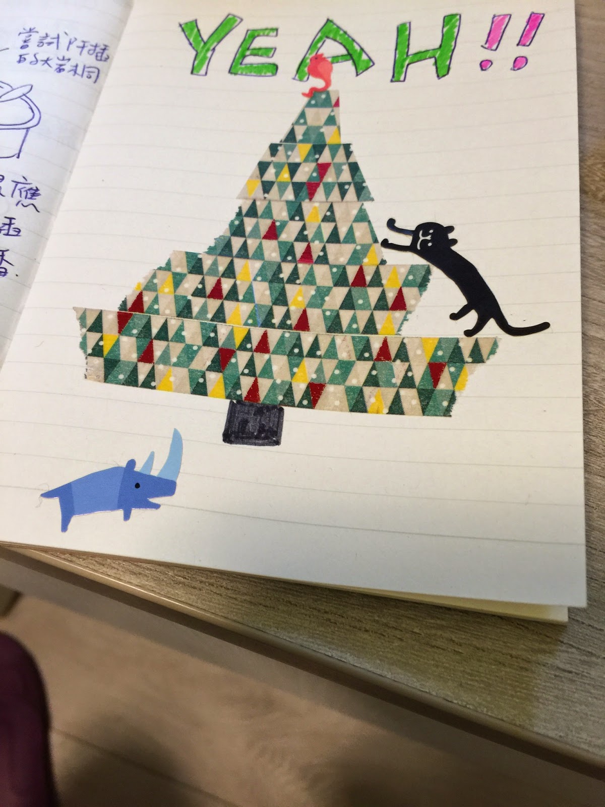 這就是黃花新月起死回生的經過!用紙膠帶貼了一棵聖誕樹表達我的喜悅:)))