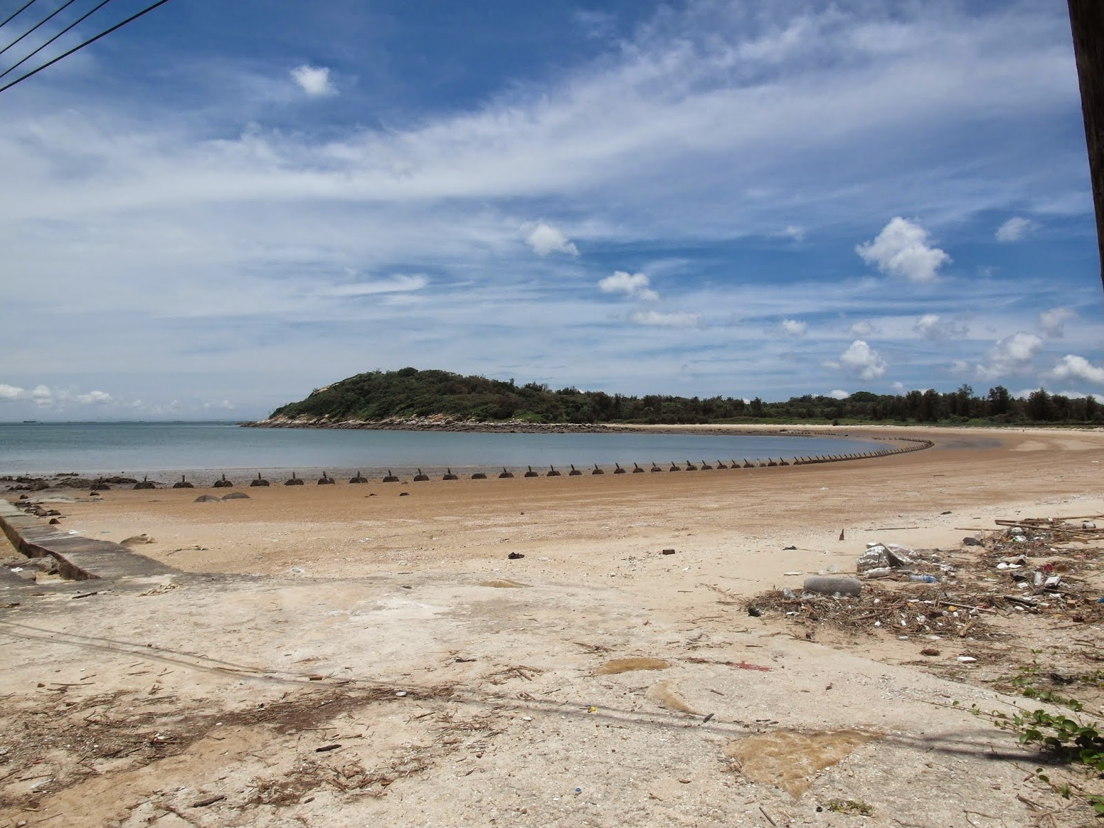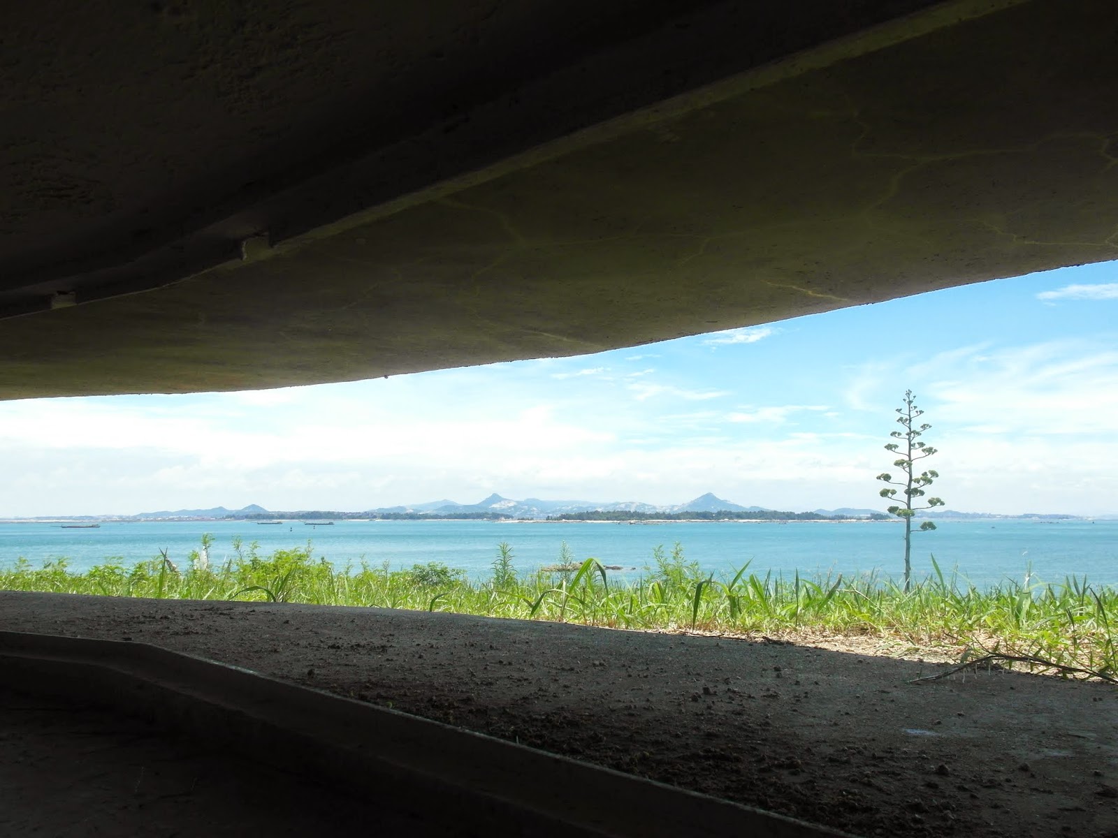 望遠鏡區遊客眾多,雖然沒有太陽直射但還是滿悶熱的,所以我們速速離開坑道,回到入口處的海邊。海灘上一排尖銳的反(船隻)登陸石樁,上頭都已經長滿苔殼,但還是可以感受到當年緊張的對峙氣氛,幸好我們如今生活在沒有戰亂的年代。