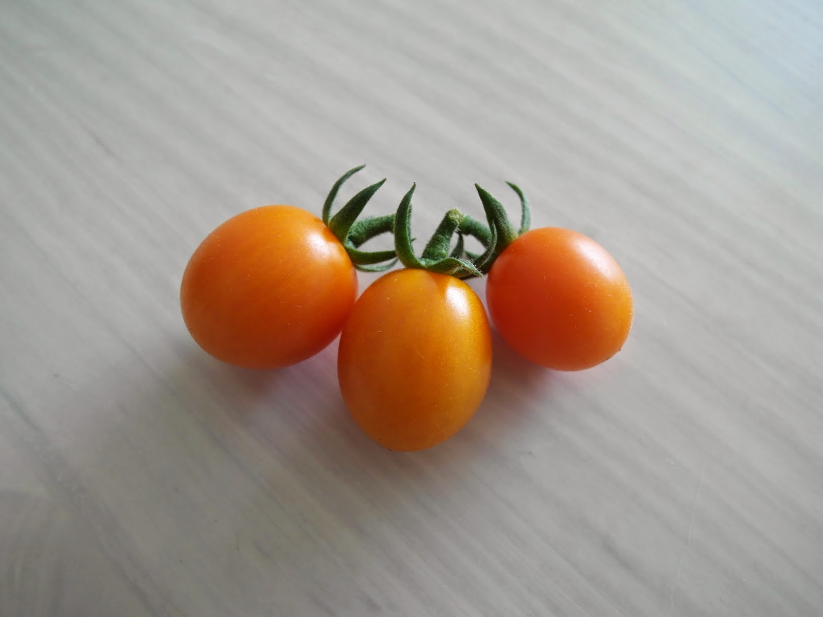 蕃茄寶寶們終於完全成熟了!原來它們是橙色品種~~~這天要採收囉!橘色的超漂亮的!